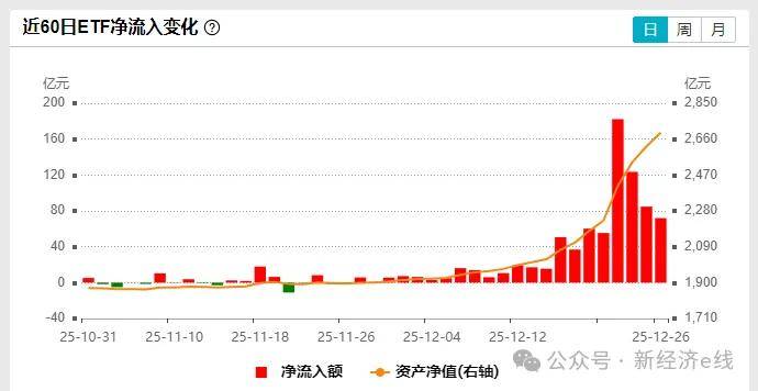 具体来看,跨境ETF中,富国中证港股通互联网ETF共获得570.73亿元净流入,与其他产品大幅拉开差距;随后的工银国证港股通科技ETF、汇添富国证港股通创新药ETF、汇添富国证港股通创新药ETF等5只产品在年内的资金净流入也超过200亿元。而在商品型ETF中,华安黄金ETF独占鳌头,年内获得净流入417.05亿元;其次的国泰黄金ETF、博时黄金ETF和易方达黄金ETF在年内的净流入也超过100亿元。